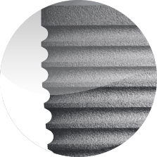 Los microanillos en el cuello del implante mejoran el BIC (contacto hueso-implante) en la zona crestal y reduce la presión sobre el hueso cortical para minimizar la resorción en el cuello del implante.