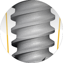 El doble hilo duplica la tasa de inserción del implante (2.40 mm), lo que permite una colocación del implante más simple y rápida. El diseño del hilo también contribuye a altas propiedades de estabilidad inicial.