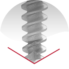 El diseño de rosca profunda permite una buena estabilidad inicial. Los hilos filosos permiten una inserción suave y predecible en el hueso duro y denso.