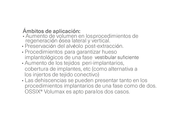OSSIX® Volumax es ideal para resolver muchos problemas en los procedimientos de cirugía regenerativa e implantaria.